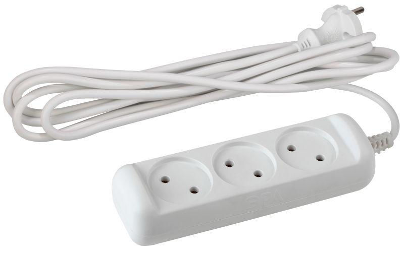 Удлинитель электрический Эра U-3-1,5m без заземления, ПВС, 2x1мм2, 3 розетки, 1,5м. Рассчитан на максимальную мощность 10А/2200 Вт. Удлинитель Эра станет Вашим надежным помощником, если Ваши любимые электроприборы находятся далеко от розеток. Провод в удлинителях Эра сделан из 100% меди, что делает его абсолютно пожаробезопасным. Корпус выполнен из ударопрочного и негорючего пластика (полипропилен). В моделях с заземлением у вилки есть кольцо для удобного извлечения из розетки. Модель удлинителя на 10А позволяет подключить мощные бытовые приборы общей нагрузкой до 2200Вт. Не бойтесь включить чайник, обогреватель, микроволновку или другие электроприборы. Толстый провод удлинителя Эра гарантирует полную безопасность. Дизайн удлинителя разработан в России командой Эра Style.