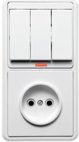Блок БКВР-212 Бэлла (3-кл. выкл. с инд. + розетка) бел. Кунцево 5841