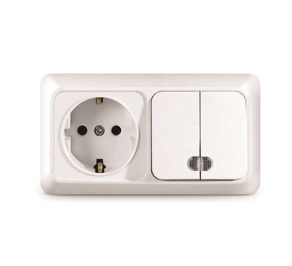 Блок объединяет двухклавишный выключатель и розетку.