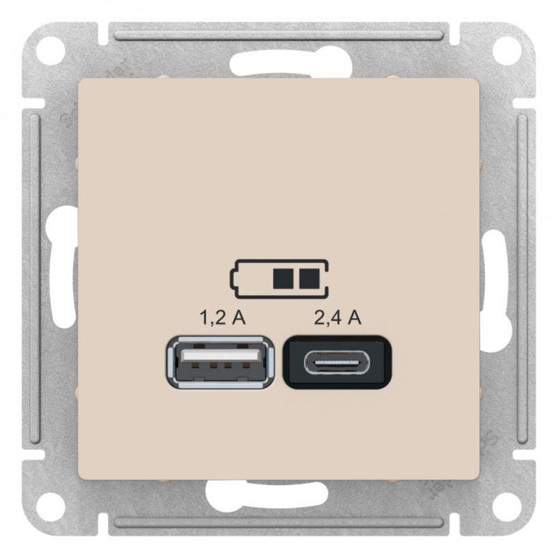 Розетка USB AtlasDesign тип A+C 5В/2.4А 2х5В/1.2А механизм беж. SE ATN000239