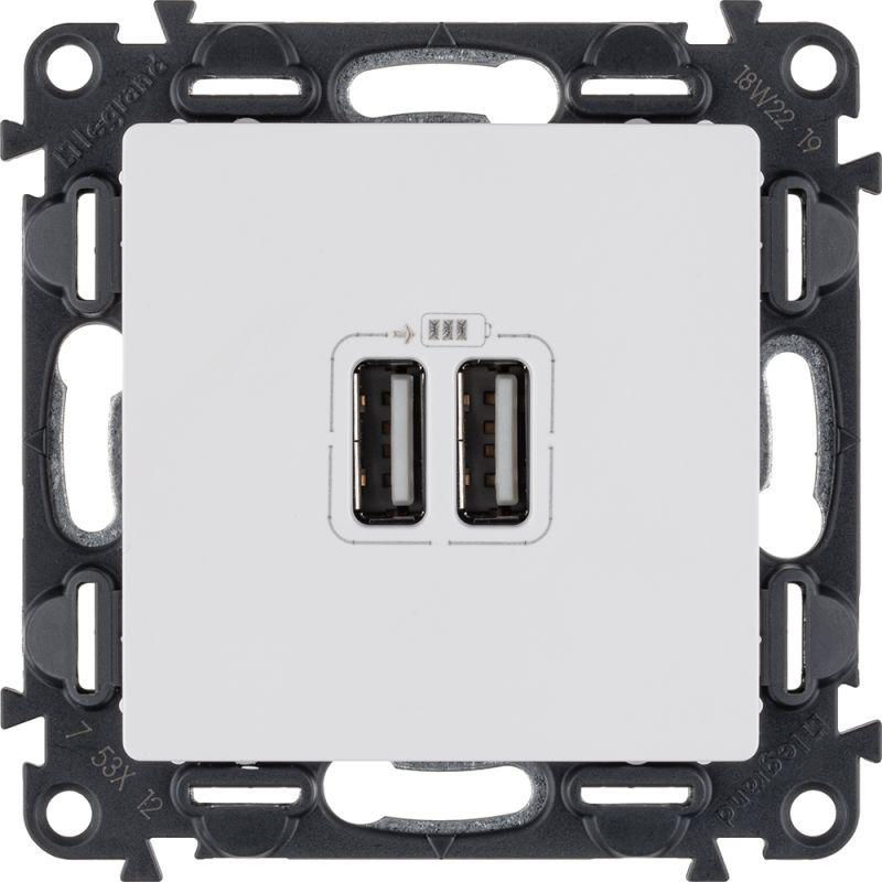 Розетка USB 2-м Valena Life 240В/5В 2400мА с лицев. панелью механизм бел. Leg 753412