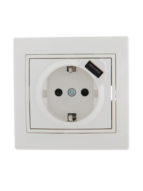 Розетка 1-м СП Mira 16А с заземл. + USB разъем бел. LEZARD 701-0202-181