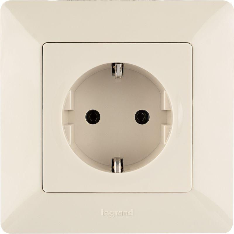 Розетка 1-м СП Valena Life 16А IP2X 250В 2P+E безвинт. клеммы с лицев. панелью механизм сл. кость Leg 753521