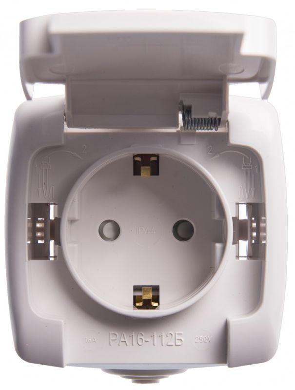 Розетка 1-м ОП Рондо 16А IP44 250В с заземл. защ. шторки бел. SchE RA16-112B-BI