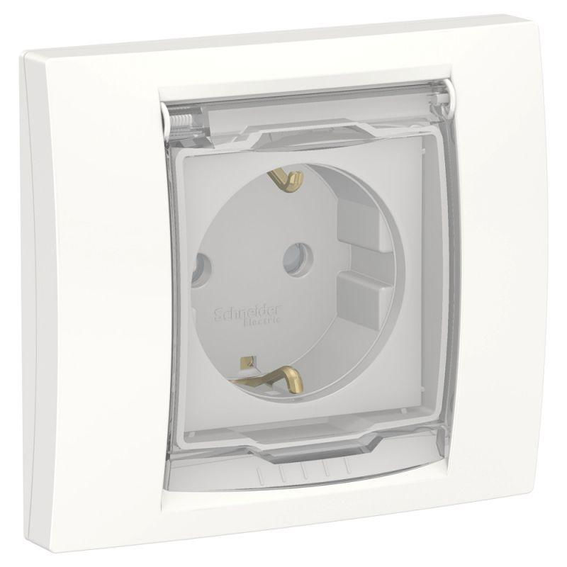 Розетка 1-м СП 2мод. Unica New 16А IP44 с заземл. защ. шторки с крышкой бел. SchE NU003718