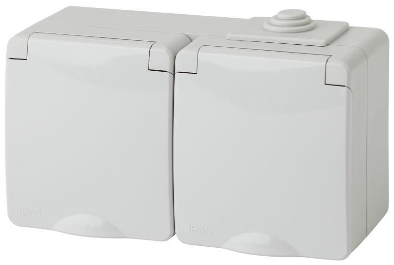 Розетка двойная горизонтальная IP65 с крышкой серии Эра Эксперт открытой установки цвет белый 11-2603-03. Номинальные характеристики 16А 250В . Устройство выполнено из качественного поликарбоната, оснащёно уникальными винтовыми клеммами ЭКСПЕРТ для максимально качественного зажима кабеля в механизме.