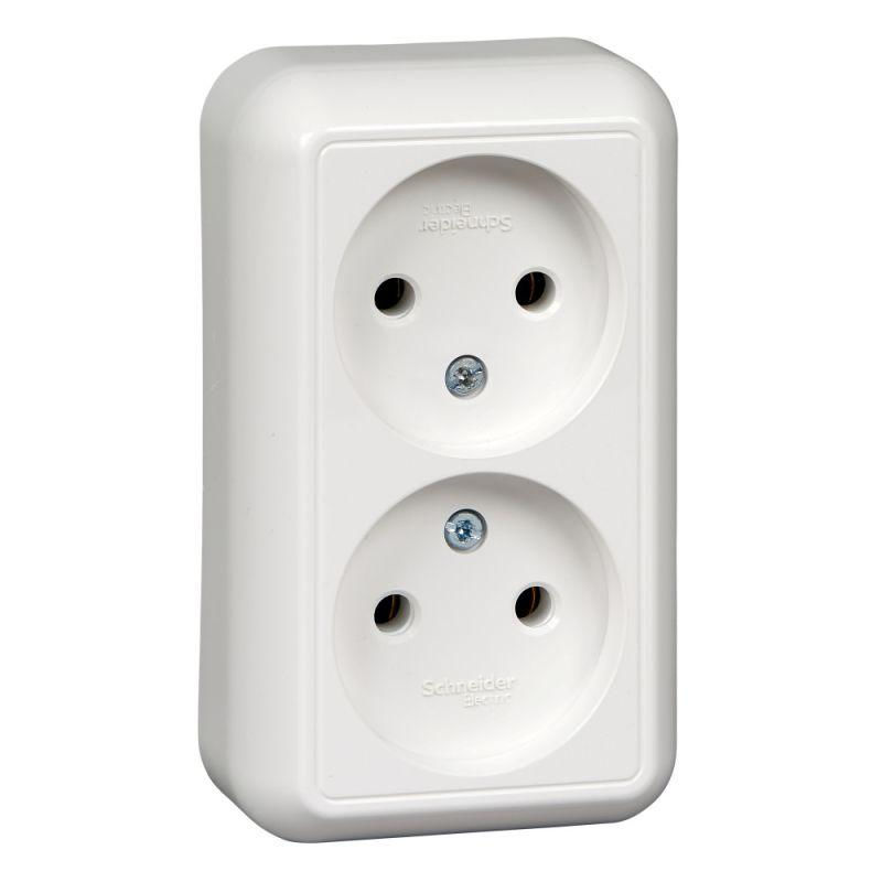 Розетка 2-м ОП Прима 16А IP20 без заземл. без защ. шторок монтаж. пласт. (опт. упак.) бел. SchE RA16-213M-B