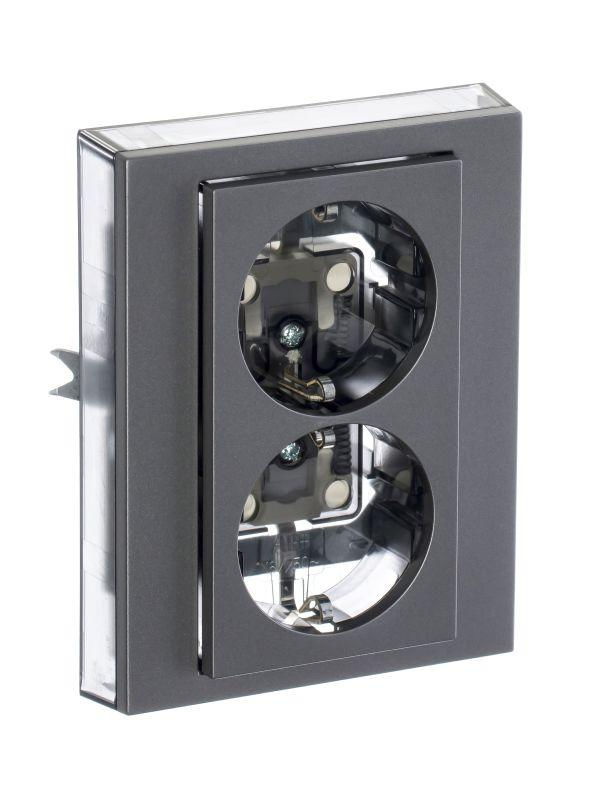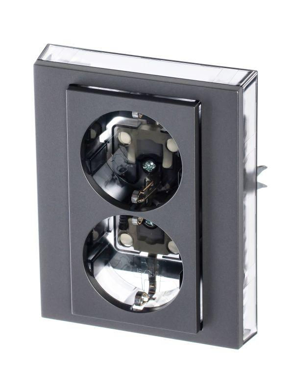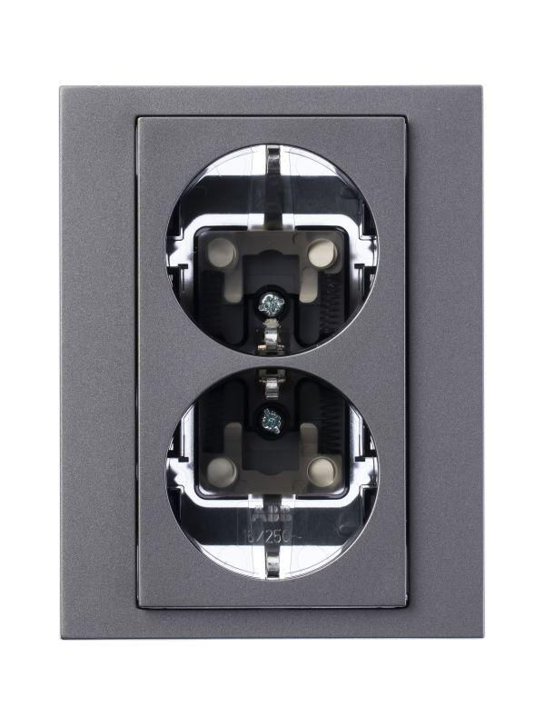 Розетка 2-м СП Levit 16А IP40 с заземл. защ. шторки сталь/дым. черн. ABB 2CHH223457C6069