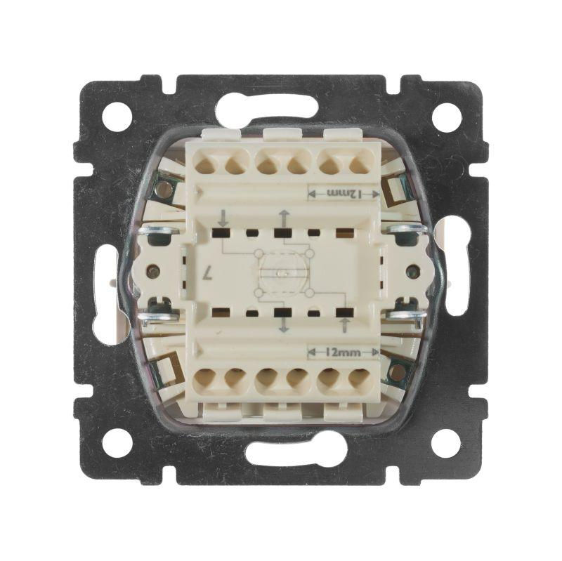 Представляет собой механизм переключателя с одной клавишей. Цвета слоновой кости. Изготовлен из пластика. Монтируется под штукатурку.