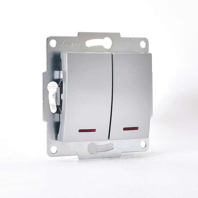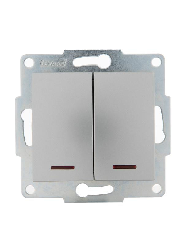 Выключатель 2-кл. 1п СП Karina 10А IP20 с подсветкой механизм матов. серебр. LEZARD 707-4388-112