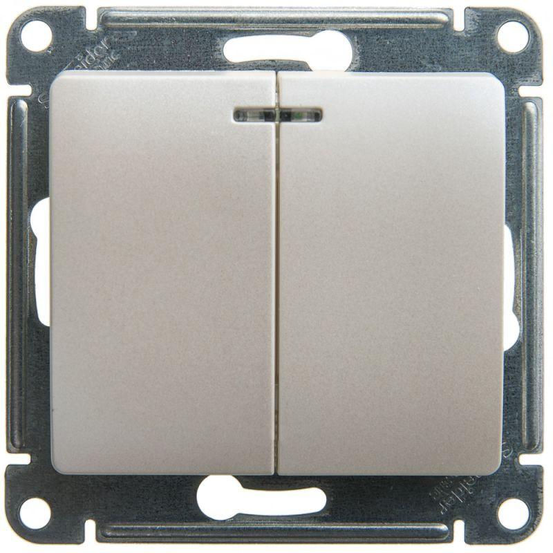 Механизм Glossa (цвет перламутр) выключателя 2-клавишного c подсветкой подходит для сетей 250 В, на ток 10 А.