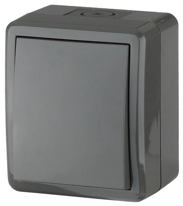 Переключатель 1-клавишный серии Эра Эксперт открытой установки цвет серый 11-1403-03. Номинальные характеристики 10А 250В . Переключатель выполнен из качественного поликарбоната, оснащён уникальными винтовыми клеммами ЭКСПЕРТ для максимально качественного зажима кабеля в механизме.