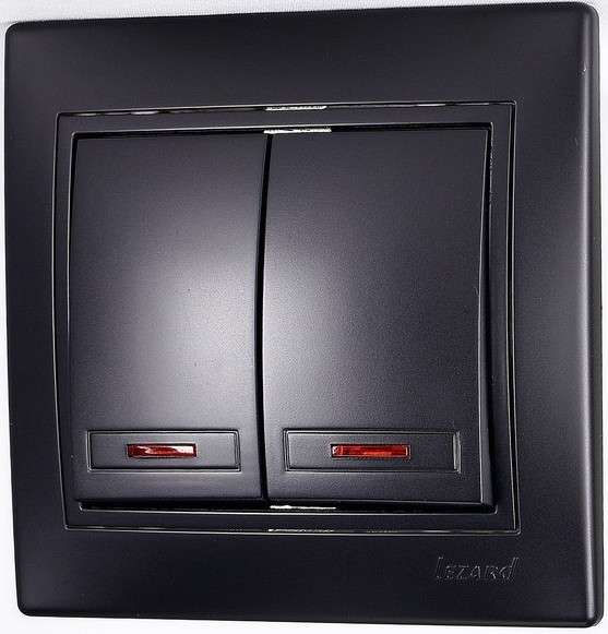 Выключатель 2-кл. 1п СП Mira 10А IP20 с подсветкой со вставкой черн. бархат LEZARD 701-4242-112