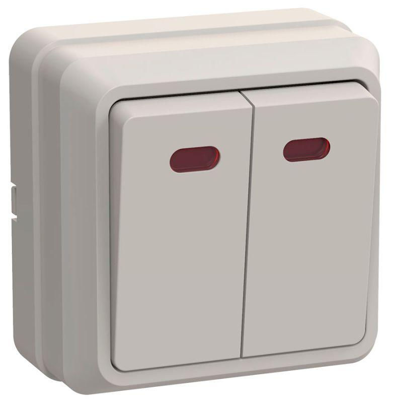 Выключатель 2-кл. ОП Октава 10А IP20 ВС20-2-1-ОКм с индикацией крем. IEK EVO21-K33-10-DC