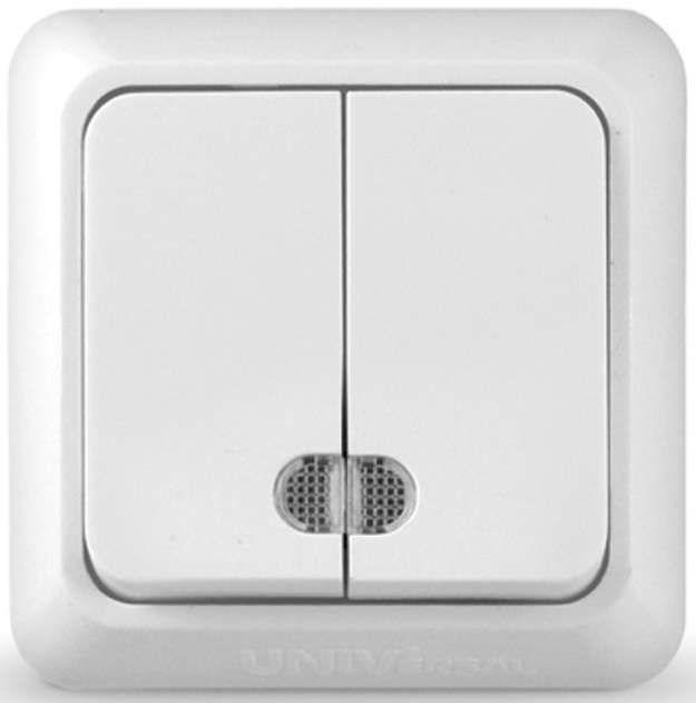 Выключатель 2-кл. ОП Олимп 10А IP20 с подсветкой бел. UNIVersal О0123