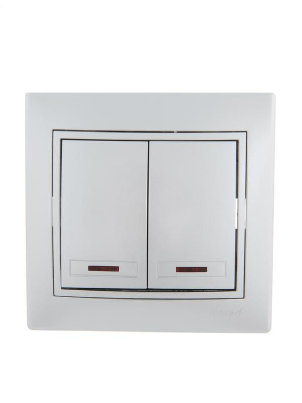 Выключатель 2-клавишный это двухпозиционный коммутационный аппарат с замыкающими (нормально-разомкнутыми) контактами, предназначенный для работы в сетях с напряжением до 1000 вольт, не предназначенный для отключения токов короткого замыкания, без специальных устройств дугогашения, местного управления, с ручным приводом.