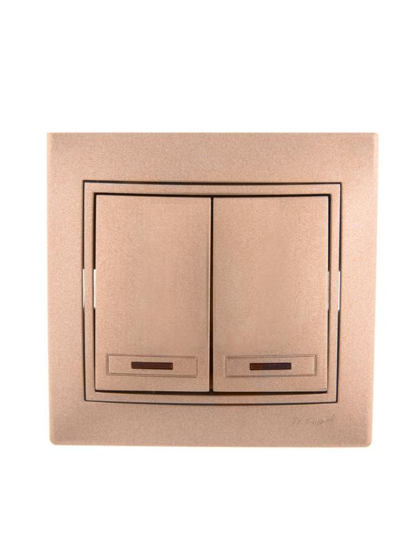 Выключатель 2-кл. СП Mira 10А IP20 с подсветкой со вставкой свет. корич. перламутр. LEZARD 701-3131-112