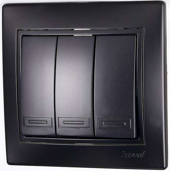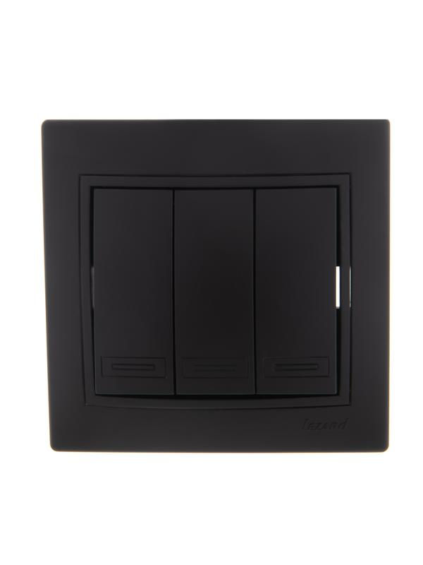 Выключатель 3-кл. 1п СП Mira 10А IP20 со вставкой черн. бархат LEZARD 701-4242-109