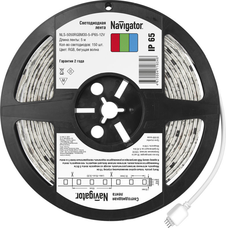 Лента светодиодная 71 834 NLS-5050RGBM30-5-IP65-12V "Бегущая волна" (уп.5м) Navigator