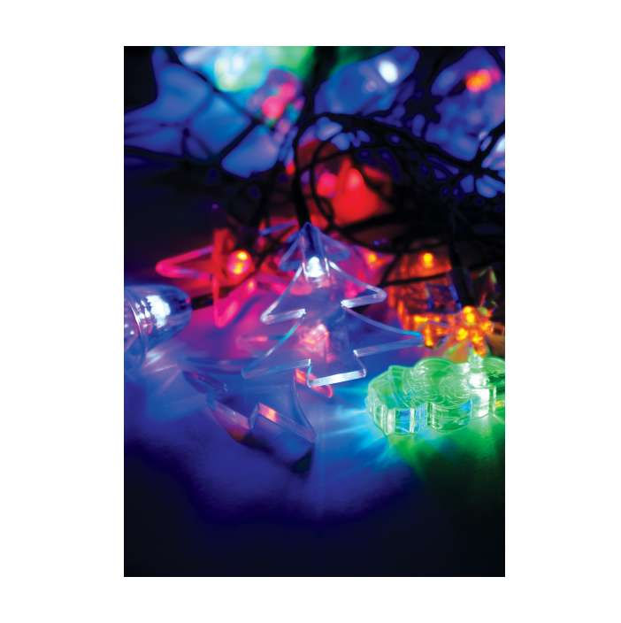 Гирлянда декоративная ''Новогодняя'' (прозр. насадки-колокольчики сосульки звездочки снежинки елочки кристаллы снеговики Дед Морозы) 4.4м 30LED IP20 мультиколор Космос KOC_GIR30LED