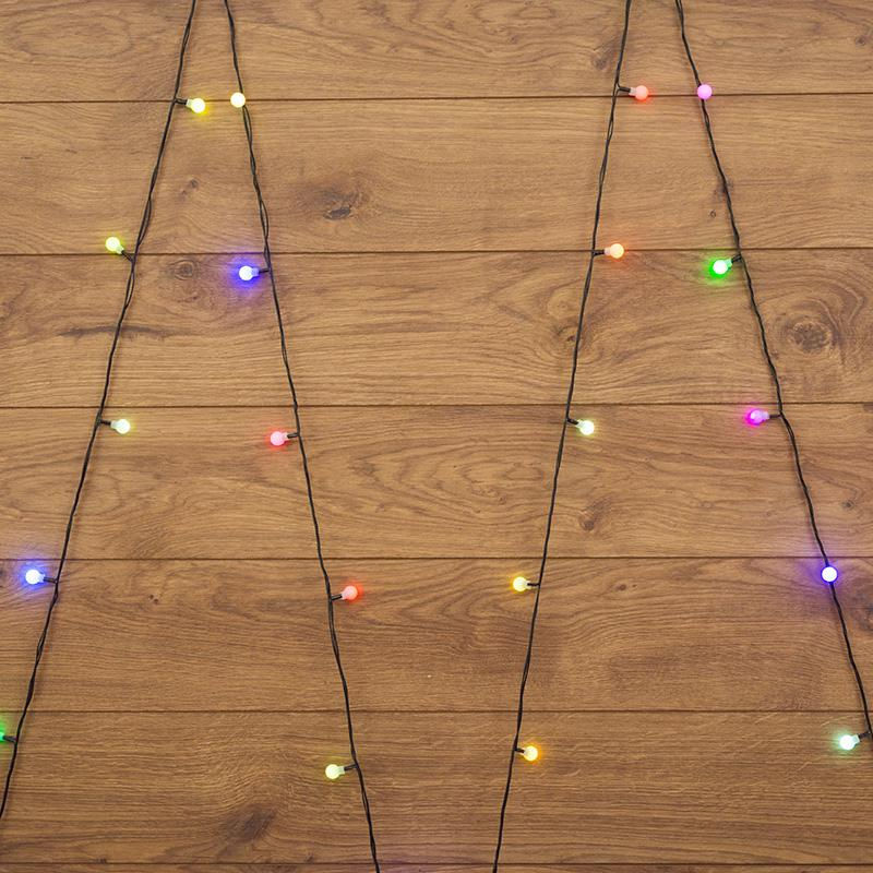 Гирлянда светодиодная ''Шарики'' 5м d15мм 30LED RGB 3.6Вт 220В IP20 провод ПВХ темн. зел. Neon-Night 303-539
