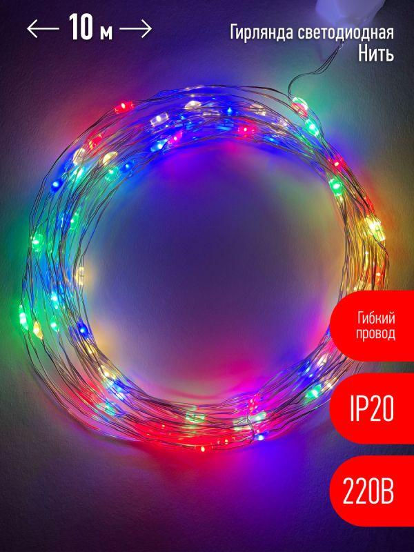 Гирлянда светодиодная ''Нить'' 10м 100LED 220В IP20 мультиколор ЭРА Б0047965
