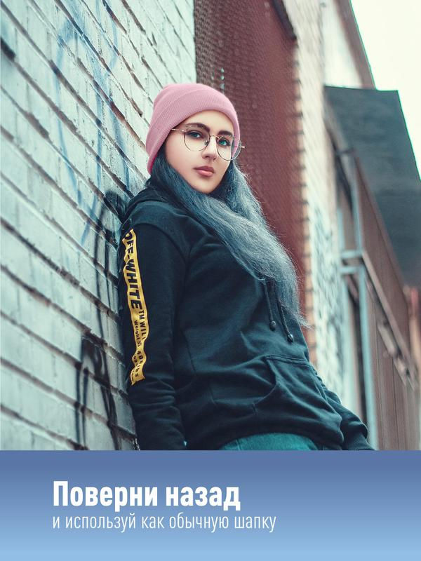 Шапка с фонариком 215х205х5 пастельно-роз. (фонарь 66х50х15мм снимается; аккум. 3.7В/200мА.ч) 3 режима свечения Космос KOCHat_pink