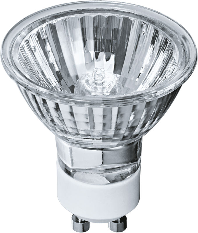 Это лампы накаливания, спираль которых работает в среде инертного газа с добавлением паров галогенов, что позволяет ей излучать на 30% больше света по сравнению с обычными лампами накаливания, а также увеличить срок службы до 2000 часов.