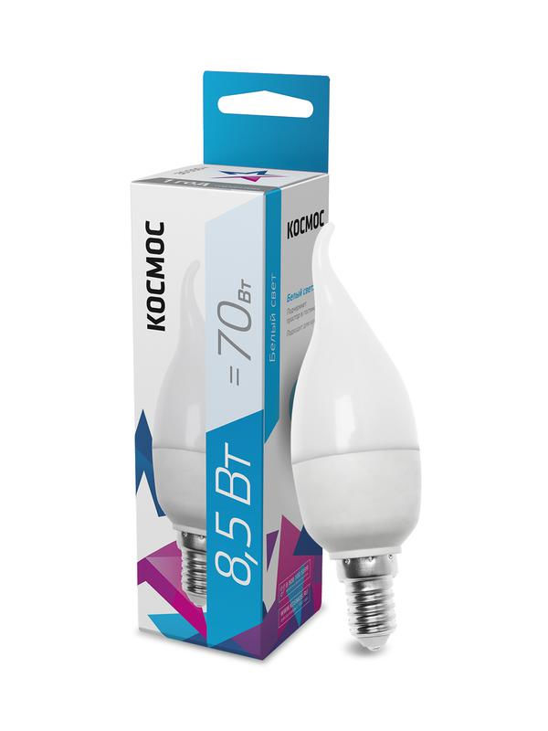 Светодиодная лампочка 8,5 Вт является аналогом лампы накаливания «свеча на ветру» 70 Вт – для средней комнаты понадобится 3 таких лампочки. Стабильный свет без падения яркости в течение всего срока службы (30 000 часов) – за счет использования светодиодов известных производителей. Лампа работает в диапазоне от 174В до 265В - не перегорит и не потеряет яркость при скачках напряжения в сети.