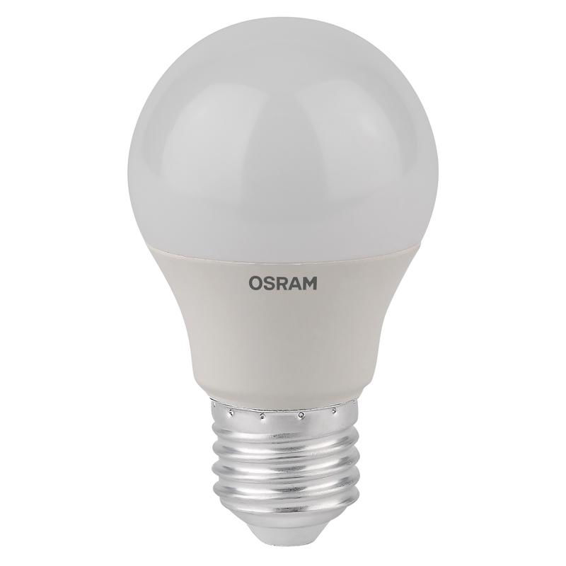 Лампа светодиодная LED STAR CLASSIC A 40 6W/827 230V FR E27 OSRAM 4052899971516 – лампа с матовой колбой "шар", белого света, длиной 110 мм, диаметром 60 мм, с цоколем Е27, мощностью 6 Вт. Цветовая температура 2700 К.