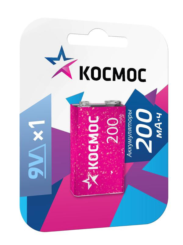 Ni-Mh (никель-металлогидридный) аккумулятор Космос – заменяет батарейку типоразмера 9В также называемую «крона» (на приборах-потребителях может обозначаться как 6LR61, 6F22, PP3). Быстро окупится - можно заряжать сотни раз, экономя на обычных батарейках. В упаковке 1 шт. Емкость 200 мАч – для устройств средней мощности. Важно – перед первым использованием аккумуляторы нужно зарядить.