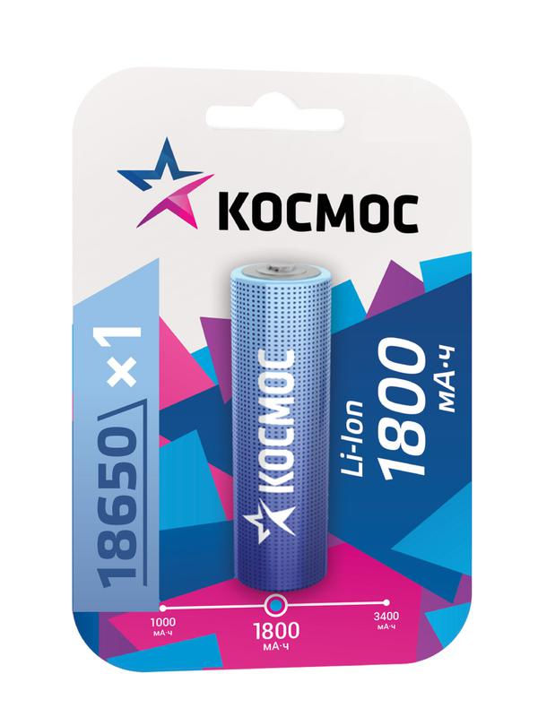 Аккумулятор Li-ion 18650 1800мА.ч без защиты (блист.1шт) КОСМОС KOC18650Li-ion18UBL1