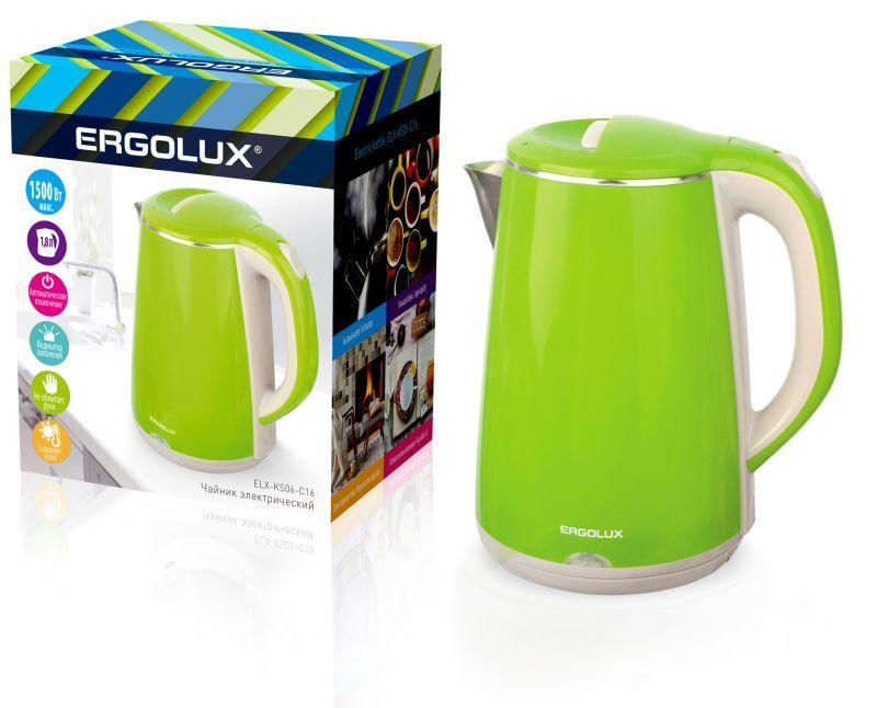 Чайник нерж.сталь/пластик ELX-KS06-C16 1.8л 220-230В 1500Вт светло-зел. Ergolux 13940
