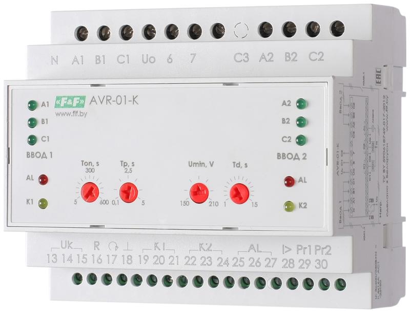 Устройство управления резервным питанием AVR-01-K (2 ввода; 1 нагрузка 35мм 3х400В+N 2х16А 2P IP20 монтаж на DIN-рейке) F&F EA04.006.001