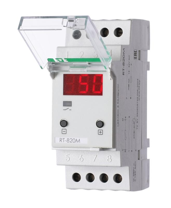 Регулятор температуры RT-820M от -30 до +140 град.C; 16А 24-264В DC/30-264В AC 1Z IP20 микропроцессорный; многофункц.; цифровая индикация; выносной датчик с термоус. проводом; монт