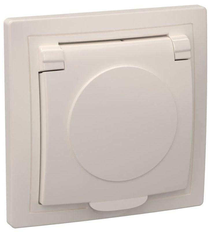 Розетка 1-м СП Кварта РСб10-3-ККм 16А IP20 с заземл. с крышкой крем. IEK ERK15-K33-16-DM