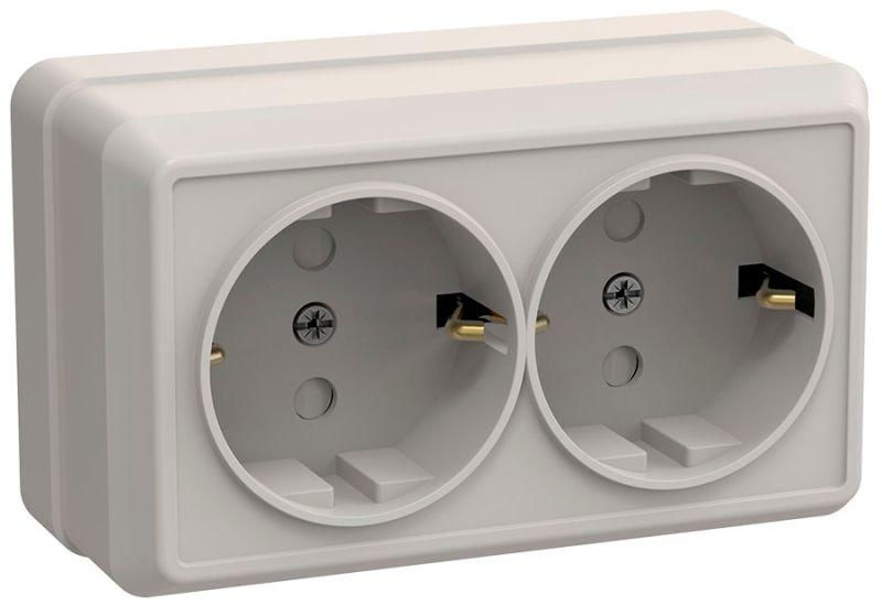 Розетка 2-м ОП Октава РСш22-3-ОКм 16А IP20 с заземл. защ. шторки крем. IEK ERO24-K33-16-DC