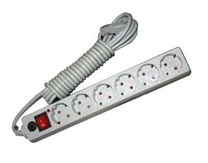 Удлинитель с сетевым фильтром 6х5м с заземл. 10А IP20 ПВС 3х0.75 защ. шторки сер. UNIVersal 967U-5005
