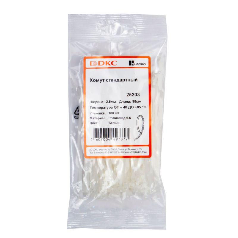 Хомут кабельный 2.5х98 полиамид бел. (уп.100шт) DKC 25203
