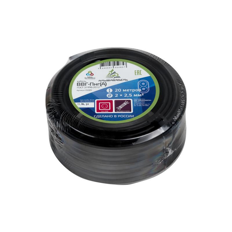 Кабель ВВГ-Пнг(А) 2х2.5 ок (N) 0.66кВ (бухта 20м) (шт) АЛЬФАКАБЕЛЬ 45991