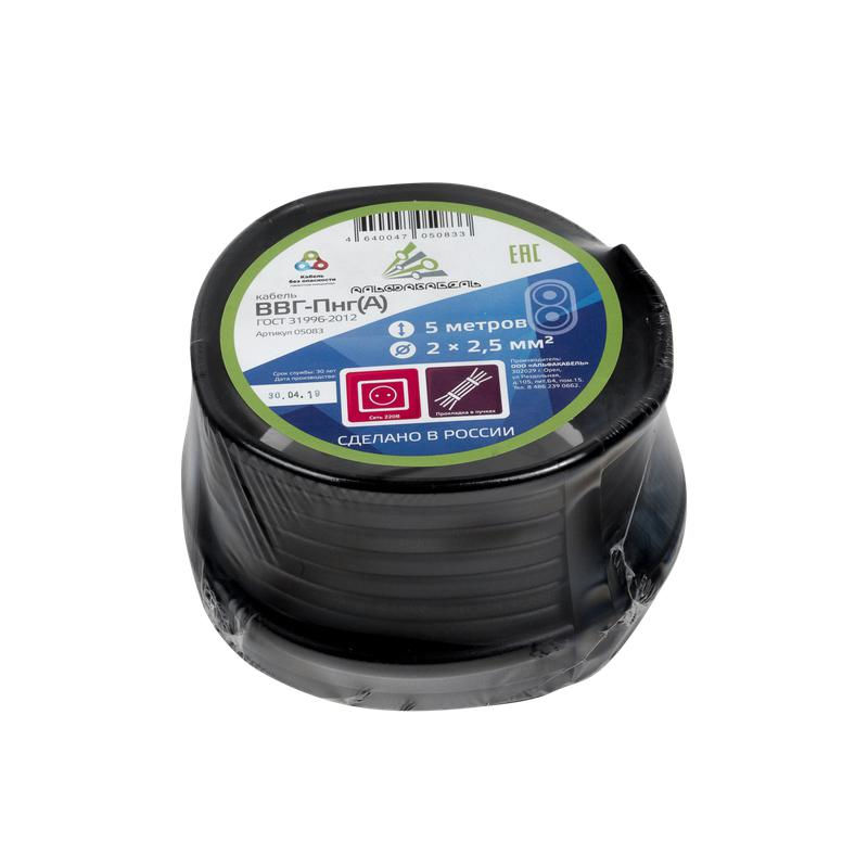 Кабель ВВГ-Пнг(А) 2х2.5 ок (N) 0.66кВ (бухта 5м) (шт) Альфакабель 65546