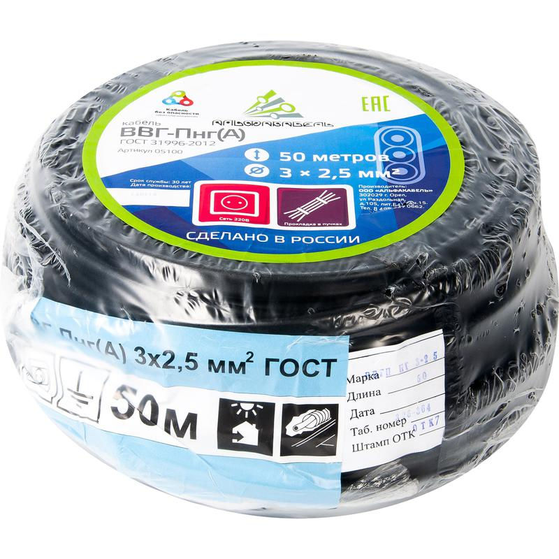 Кабель ВВГ-Пнг(А) 3х2.5 ок (N PE) 0.66кВ (бухта 50м) (шт) АЛЬФАКАБЕЛЬ 45977