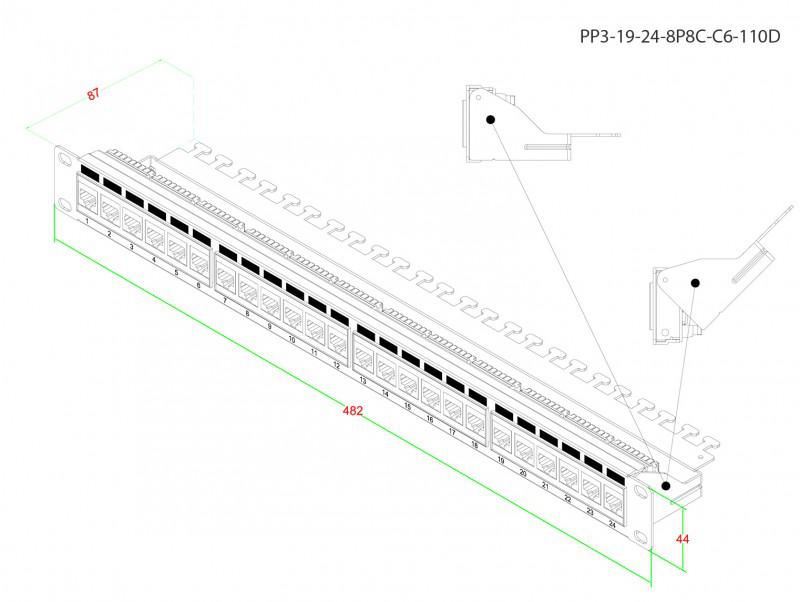 Патч-панель 19дюйм 1U RJ45 кат.6 24 порта Dual IDC ROHS PP3-19-24-8P8C-C6-110D черн. Hyperline 246107