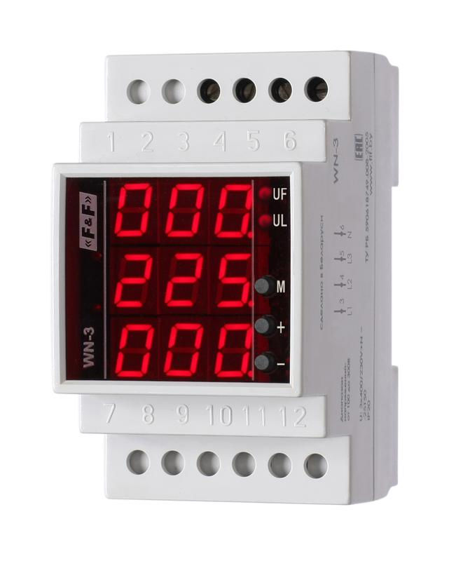 Указатель напряжения WN-3 (трехфазный; 20-450В отображает фазные или линейные напряжения; цифровая индикация; память миним. и макс. значения напряжения 3 мод. монтаж на DIN-рейке)