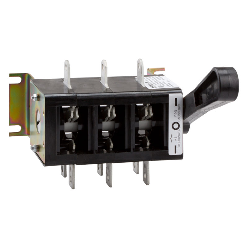 Выключатель-разъединитель 3 полюсный на номинальный ток 400 А, в котором установлена съемная рукоятка.