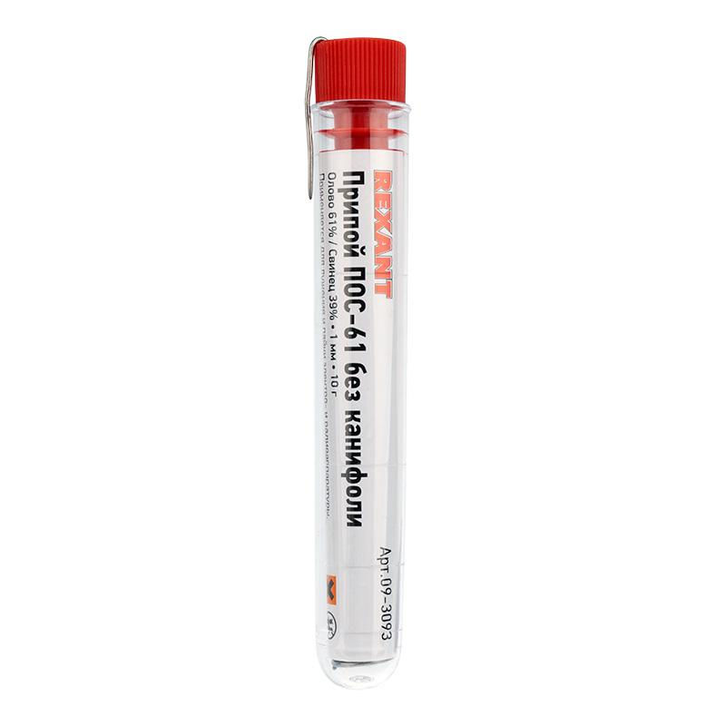 Припой без канифоли ПОС-61 10г d1.0мм (Sn61 Pb39) колба Rexant 09-3093