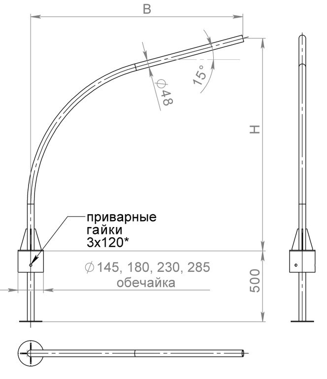 Размеры: высота Н 1000 мм, вылет В 1000 мм, G или D 230 мм, масса 16 кг.