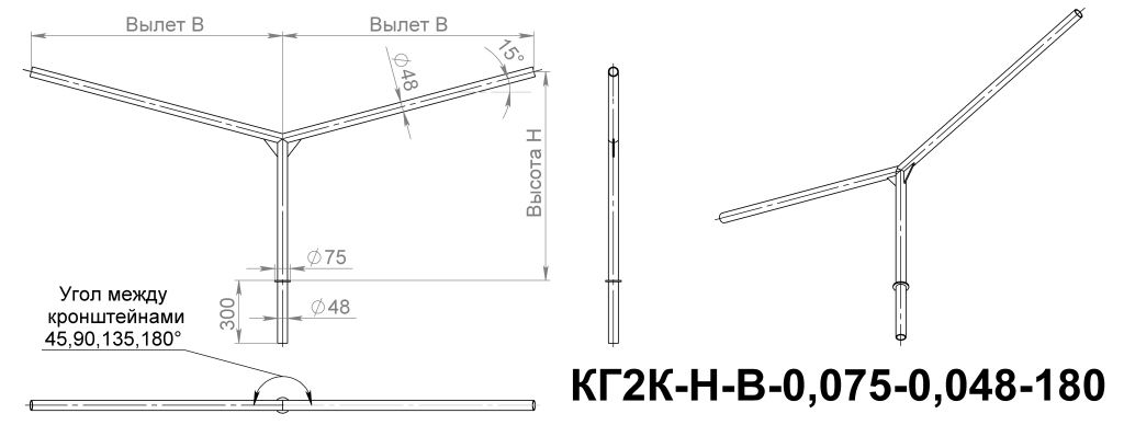 Кронштейн для 2 светильников КГ2К-1,0-2,0-0,075-0,048-45/90/135/180 окраш
