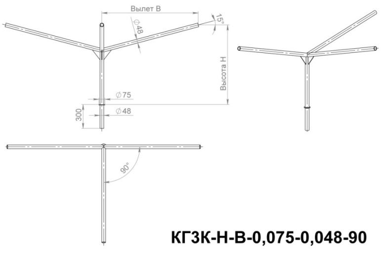 Кронштейн для 3 светильников КГ3К-0,2-0,2-0,075-0,048-90/120 окрашен
