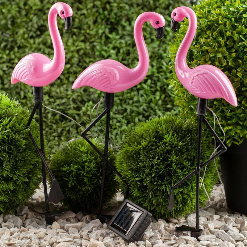 Светильник функционирует на солнечной батарее. Такой способ получения энергии является максимально экологичным, энергоемким, а также бесшумным. Питание происходит во включенном режиме, днем. С наступлением ночи фламинго загораются. Животики и головки фигурок заливаются спокойным белым светом и освещают территорию вокруг себя, создавая уютную атмосферу.